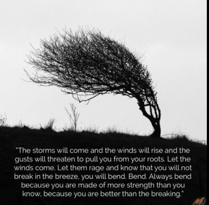 Bending doesn’t have to mean resilience or independence or standing up for yourself. Sometimes bending is asking for help when you need it, allowing others in to support you and also adapting to a new route, outlook or view. So I ask you, what do you need to bend on?